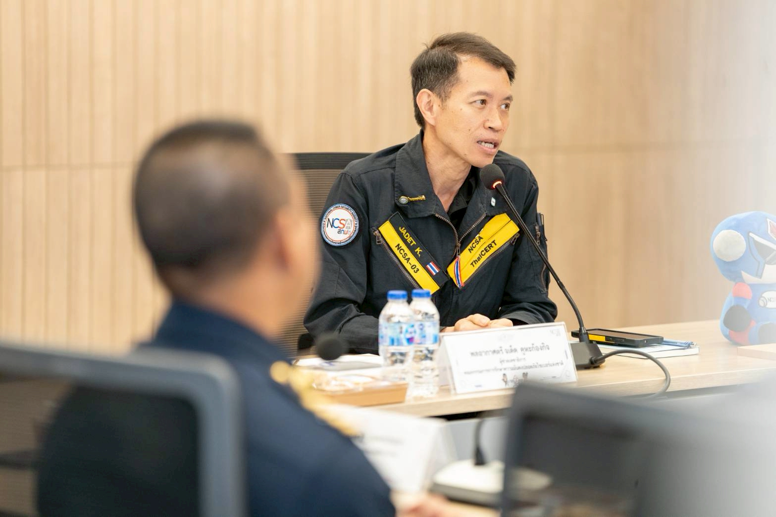 ได้รับเกียรติจาก พลอากาศตรี อมร ชมเชย เลขาธิการคณะกรรมการการรักษาความมั่นคงปลอดภัยไซเบอร์แห่งชาติ ให้การต้อนรับ และมอบนโยบายด้านการดำเนินงานความมั่นคงปลอดภัยไซเบอร์ของประเทศ พร้อมทั้ง พลอากาศตรี จเด็ด คูหะก้องกิจ ผู้ช่วยเลขาธิการคณะกรรมการการรักษา
