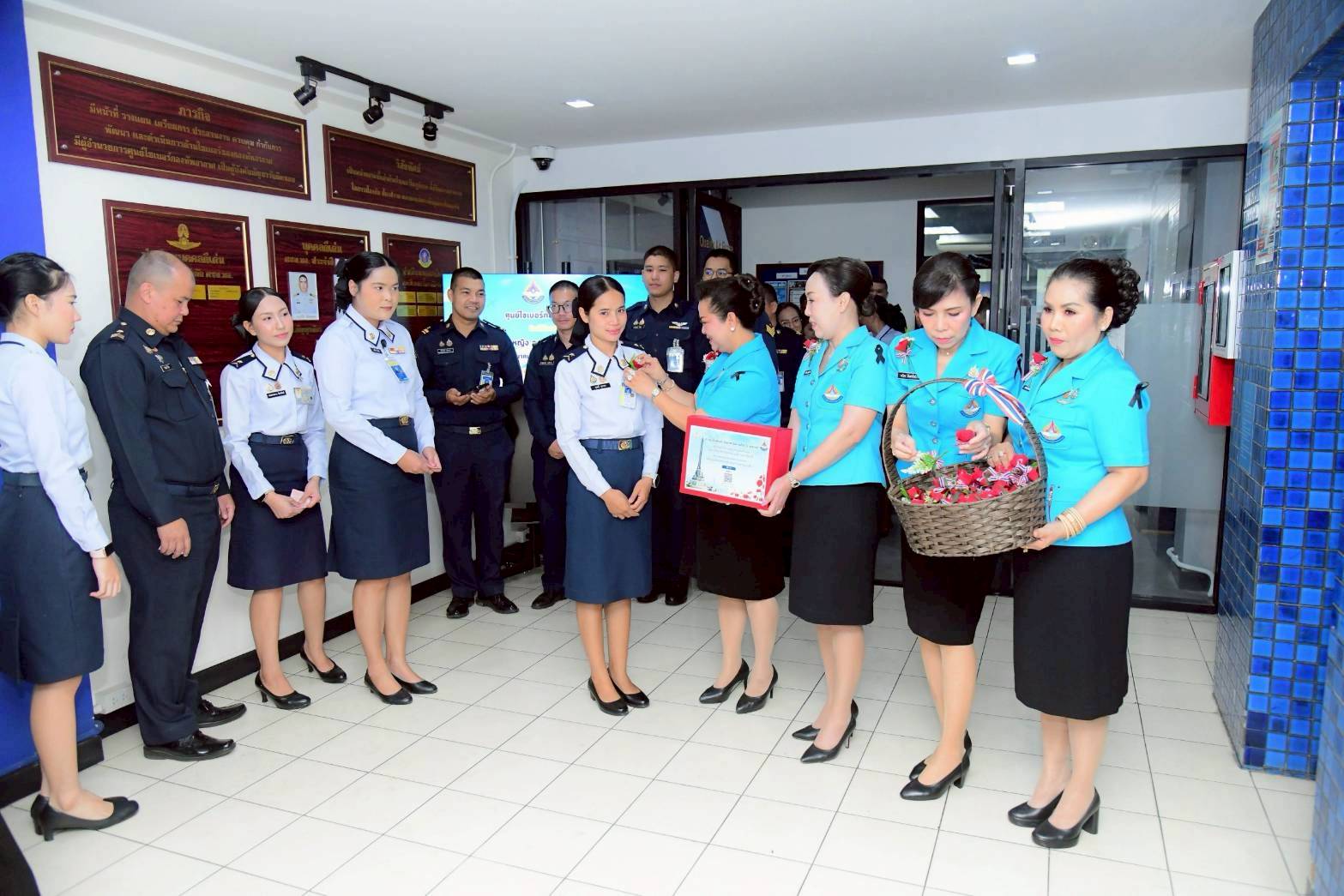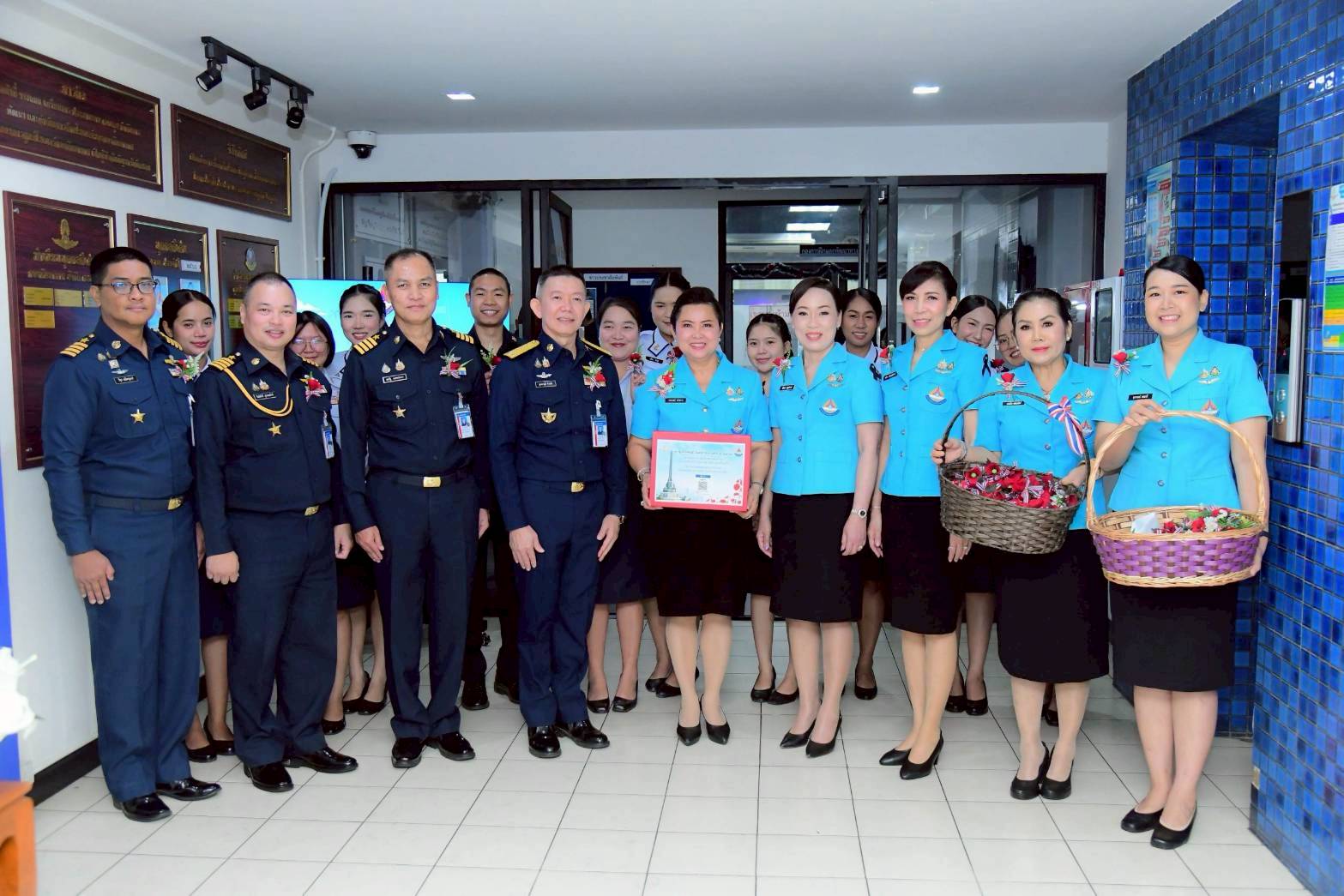 นาวาอากาศเอกหญิง วราภรณ์ เกิงฝาก อุปนายกสมาคมแม่บ้านทหารอากาศ และคณะ