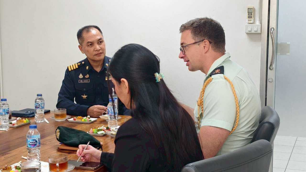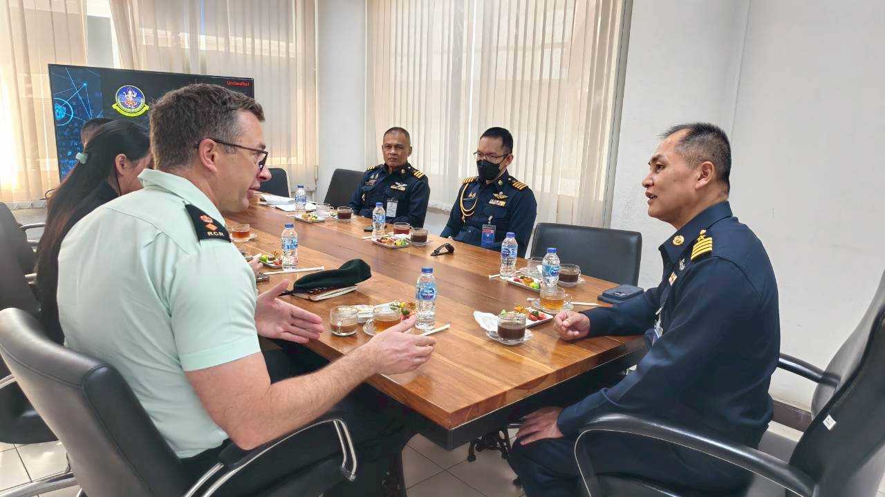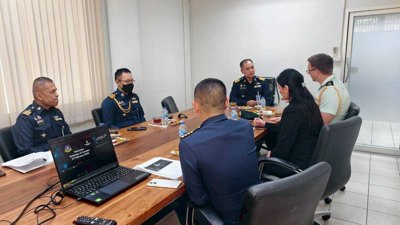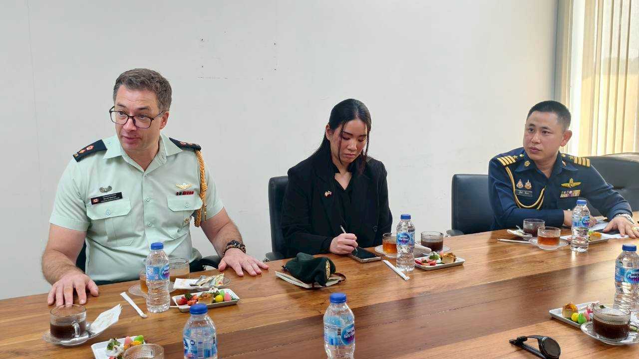 นาวาอากาศเอก สหรัฐ เนตรประภา รองผู้อำนวยการศูนย์ไซเบอร์กองทัพอากาศ ให้การต้อนรับ นาวาอากาศโท เดเรก เวสแซน (Lcol Derek Wessan) ผู้ช่วยทูตฝ่ายทหารแคนาดาประจำ ประเทศไทย พร้อมคณะ เนื่องในโอกาสหารือแลกเปลี่ยนมุมมองและประสบการณ์ที่เกี่ยวข้อง เป็นการเสริมสร้างความสัมพันธ์อันดีระหว่างหน่วยงาน เพื่อส่งเสริมความร่วมมือด้านต่าง ๆ ในอนาคตต่อไปเมื่อวันพฤพัสบดีที่ ๑๒ กุมภาพันธ์ ๒๕๖๙ ณ ห้องรับรอง ศูนย์ไซเบอร์กองทัพอากาศ