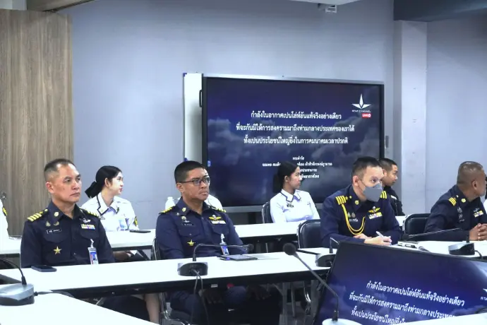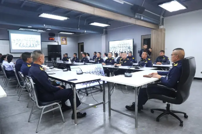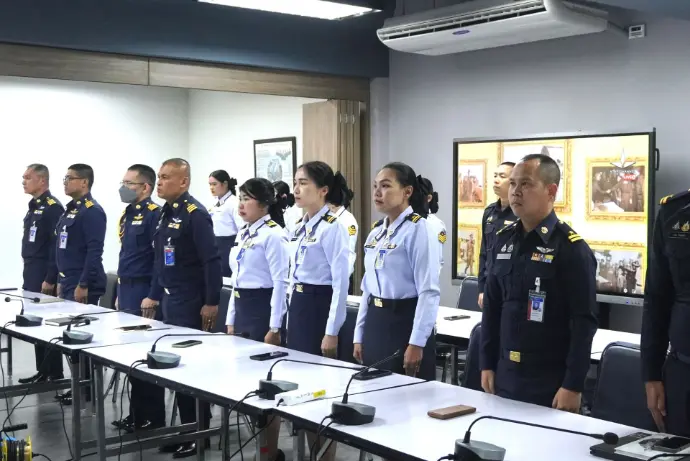 นาวาอากาศเอก อภิชาติ บุตรสาทร รองผู้อำนวยการศูนย์ไซเบอร์กองทัพอากาศ นำข้าราชการ และพนักงานราชการศูนย์ไซเบอร์กองทัพอากาศร่วมรับฟังการแถลงเจตนารมณ์ ประจำปี พ.ศ.๒๕๖๙ โดย พลอากาศเอก เสกสรร คันธา ผู้บัญชาการทหารอากาศ